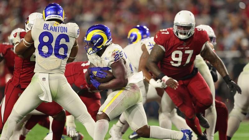 Sony Michel in azione durante la sfida tra  Los Angeles Rams e Arizona Cardinals. AFP