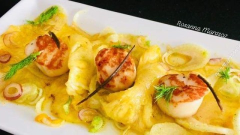 Insalata di ananas, finocchio con dressing di vaniglia e capesante